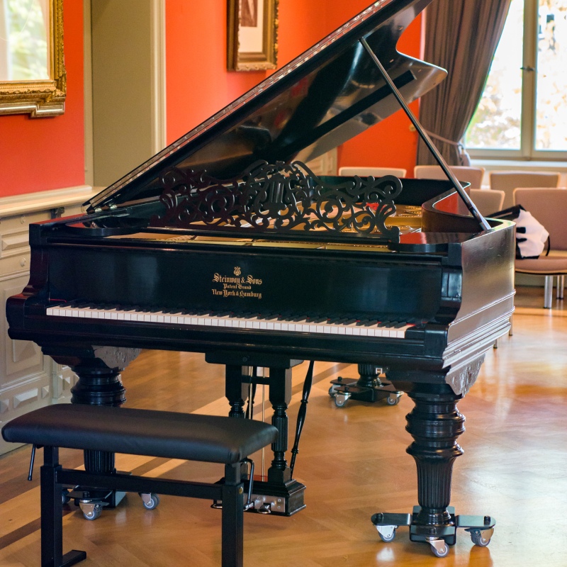 Auch die Geschichte eines faszinierenden Konzertflügels beginnt bei Eugen d’Albert. Bereits aus Coswig weitergezogen, kaufte der Künstler bei der Hamburger Firma Steinway & Sons einen Flügel der Nummer 92001. Ein ihm zugeschriebenes Autograf auf der Unterseite des Lampentellers dokumentiert ein Konzert in Elberfeld bei Wuppertal am 26. November 1898, womöglich das erste auf seinem Neuerwerb. Manches Rätsel bleibt ungelöst um diesen gewaltigen, 600 Kilo schweren D-Flügel. So ist unklar, warum und bei wem der Steinway 1936, zwei Jahre nach d’Alberts Tod, gepfändet wurde. Erst vier Jahrzehnte später taucht das Instrument wieder auf: Der Münchner Herrenmaßschneider Willy Flingelli kaufte es 1971 in einem Pianohaus. 32 Jahre später zogen die Flingellis um. Der Flügel passte nicht durchs neue Treppenhaus und wurde dem Münchner Stadtmuseum anvertraut. Das wiederum bot das Instrument der Villa Teresa als Dauerleihgabe an. Dort blieb es im Herrensalon zunächst ein stummes Exponat, bis es die „Teresa Carreño und Eugen d’Albert Gesellschaft Coswig e. V.“ erwarb.